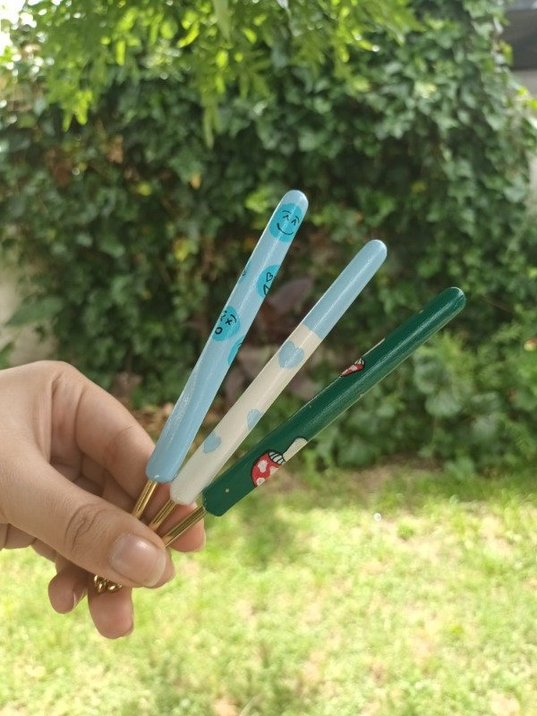 🧶Mango Artesanal de porcelana fria, pintados con acrilico y barniz