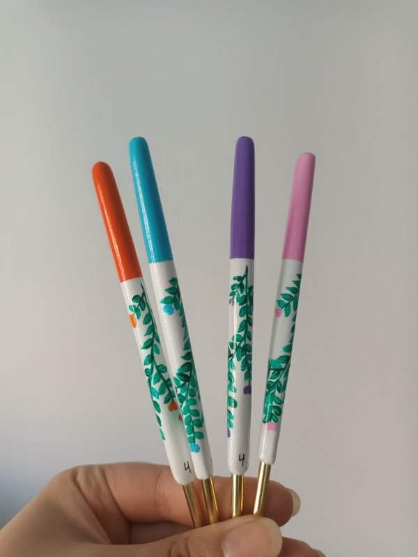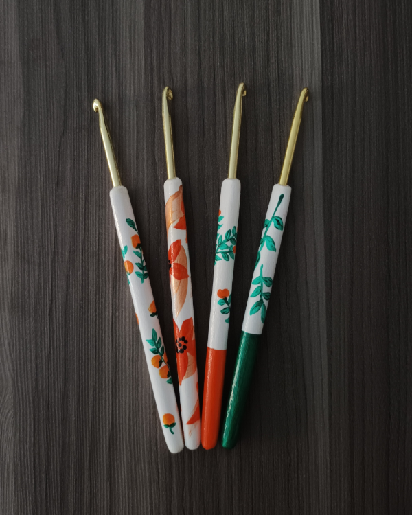 🧶 Cuatro (4) agujas de crochet Diseño a Elección entre números: 2 - 2.5 - 3 - 3.5 - 4 - 4.5 - 5 - 5.5 - 6 - 7 - 8 - 9 - 10 - 12 mm en Silver Dorada